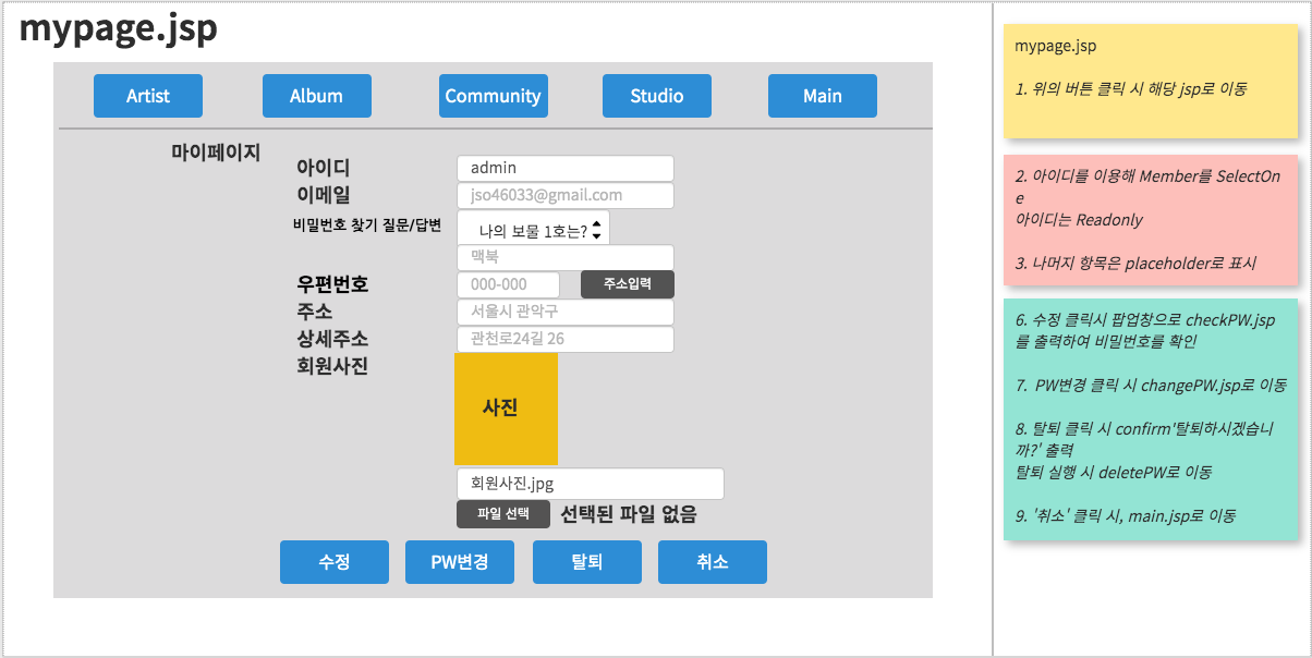 UI설계서를 짜는데만 3일이 걸리다니.. 생각보다 오래걸렸지만 열심히 설계한만큼 개발시간이 단축되길 바래본다.