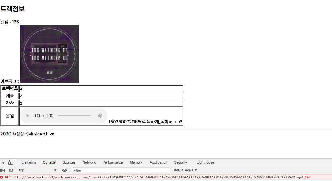 그랬더니 한글 노래파일도 정상적으로 업로드 되고, 오디오 태그에서 실행되는 걸 확인할 수 있었다!